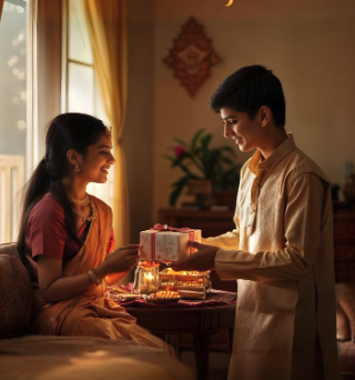 बहन भाई को तिलक लगाती है, आरती उतारती है और मिठाई खिलाती है। बदले में भाई देता है उपहार और सुरक्षा का वचन।